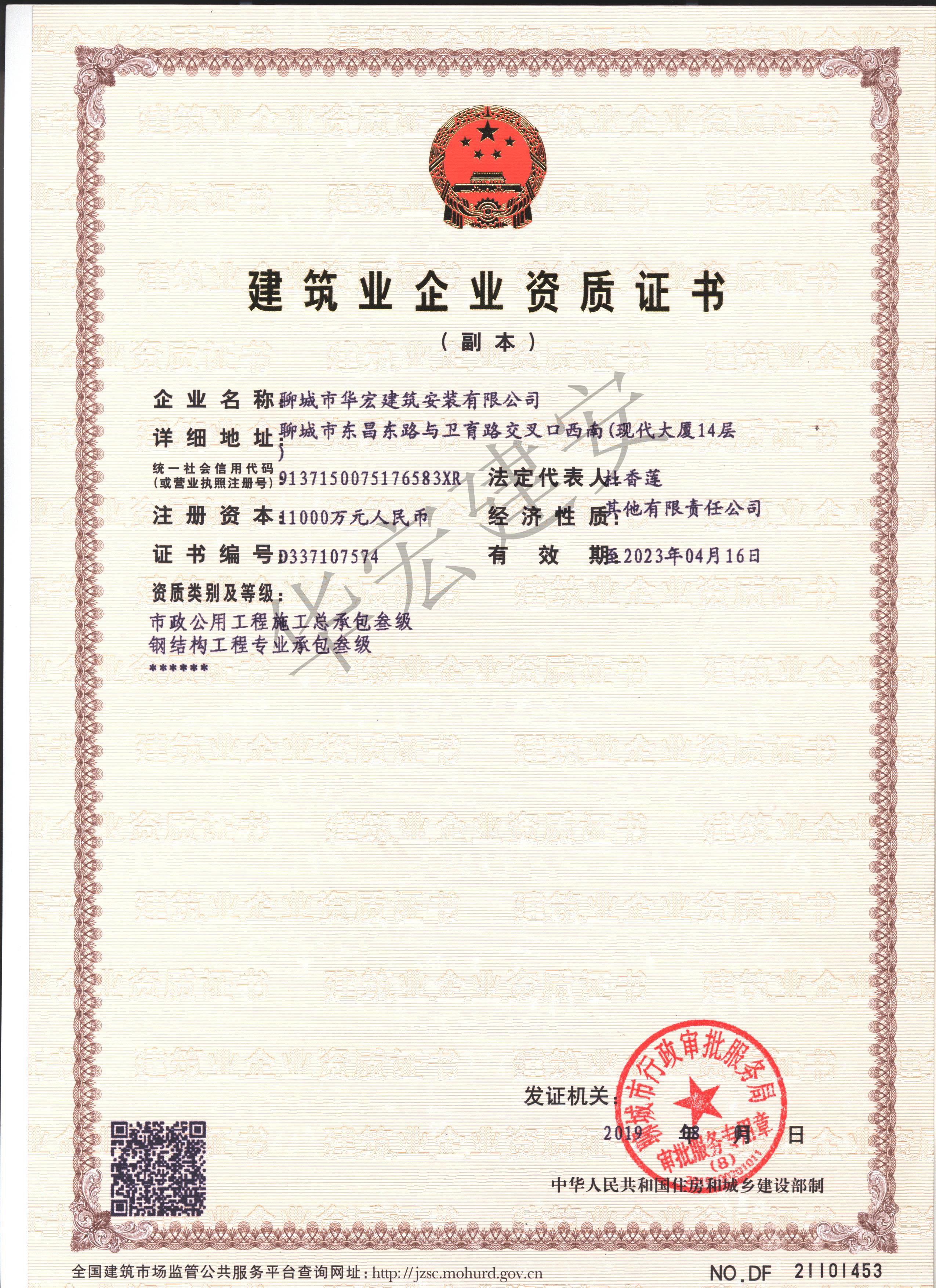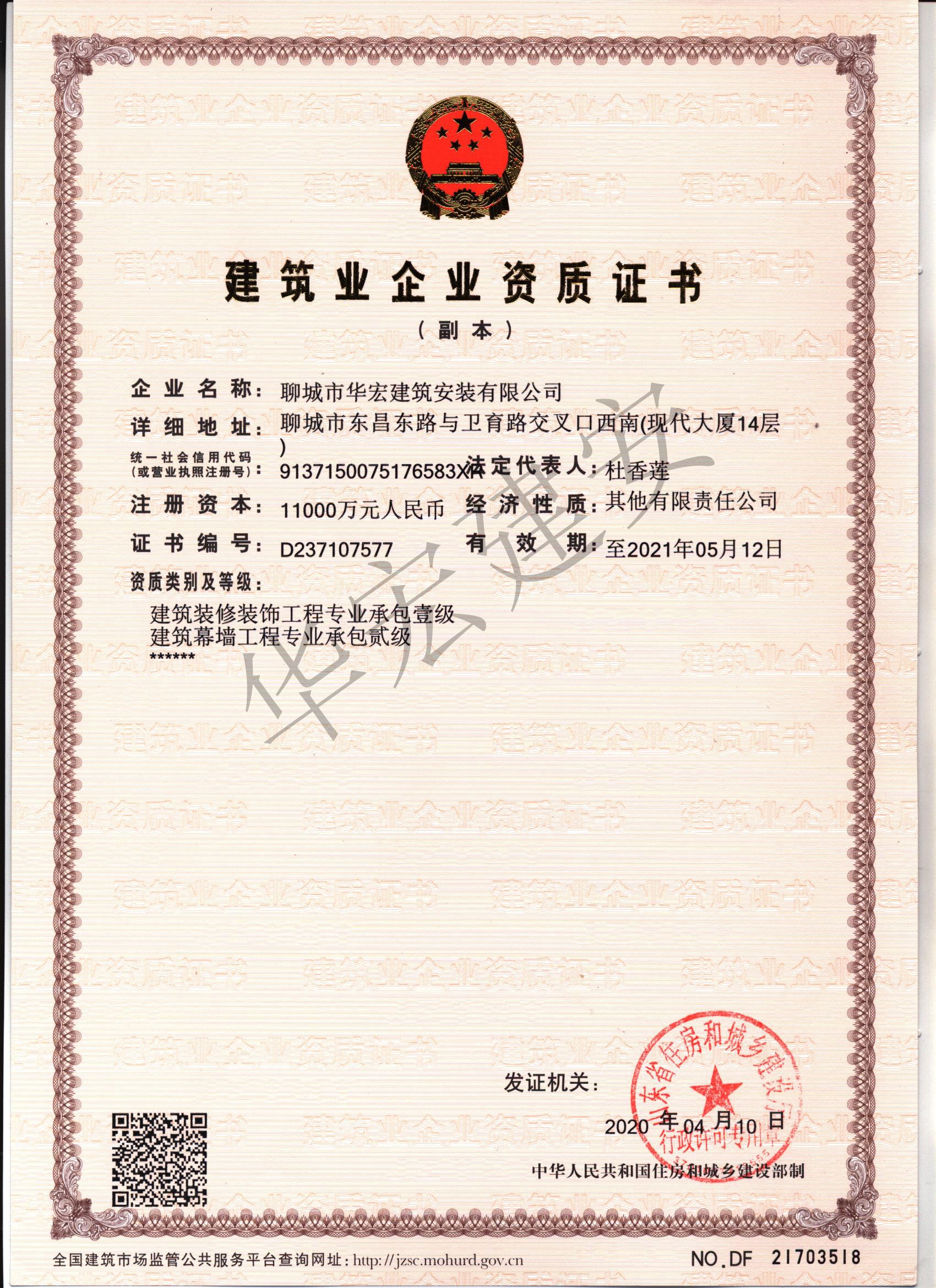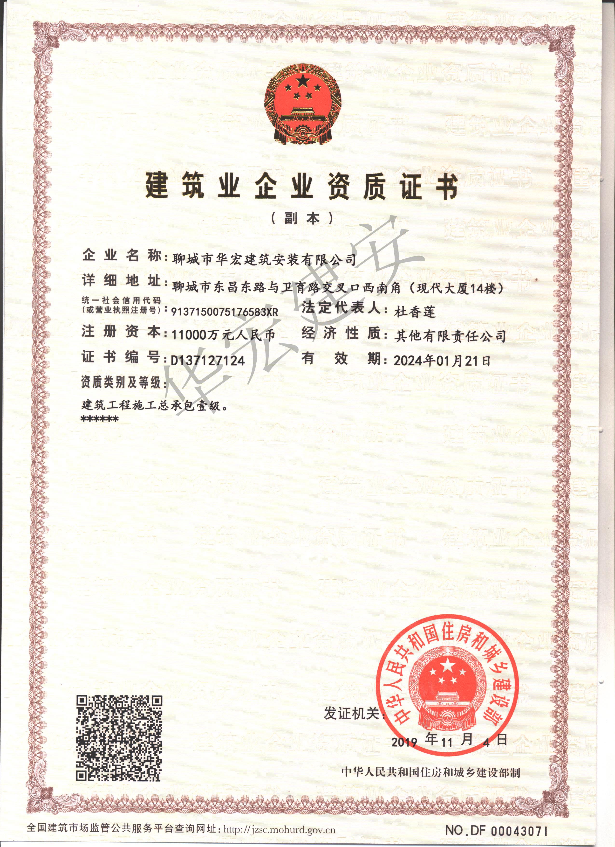 聊城市華宏建筑安裝有限公司成立于2002年5月,公司自2002年成立以來,不斷發(fā)揚(yáng) “敬業(yè)修身 打造精品 開拓創(chuàng)新 弄潮勇進(jìn)”的創(chuàng)業(yè)精神,始終遵循“以質(zhì)量求生存、靠精品創(chuàng)品牌、憑信譽(yù)贏市場”的宗旨,認(rèn)真奉行“科學(xué) 高效 一流”的質(zhì)量方針